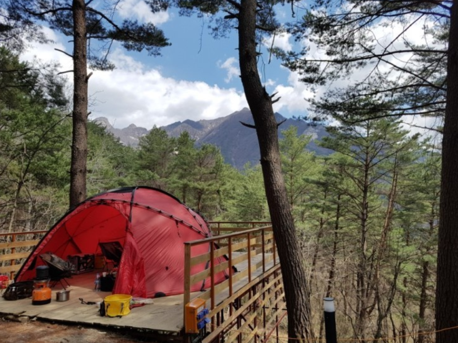 유명한 캠핑장인만큼 설악산 능선에 딱 자리잡아