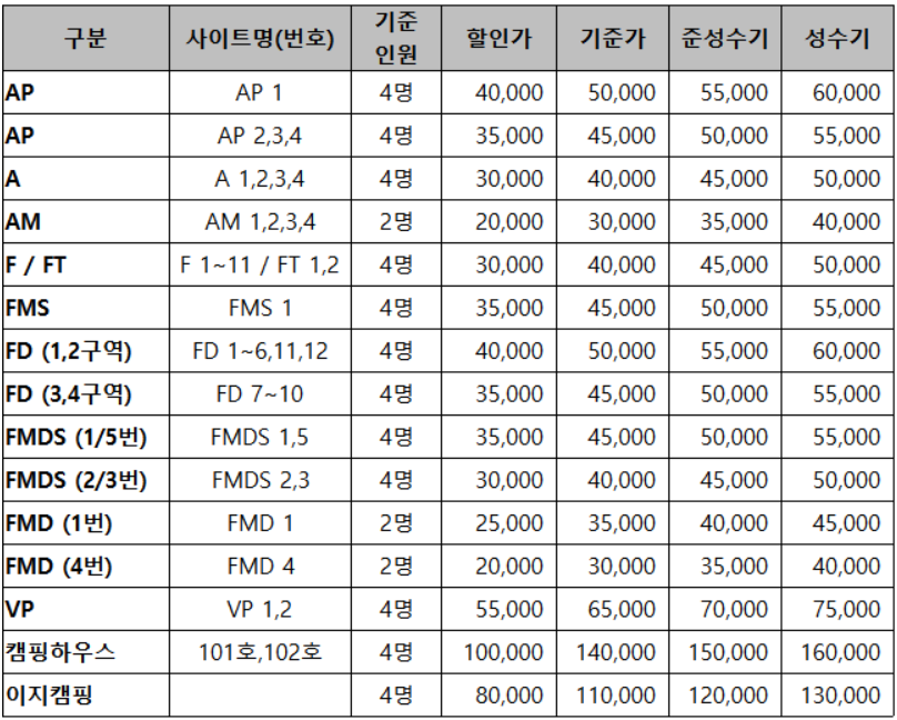 -할인가,기준가,준성수기,성수기로 구분됨